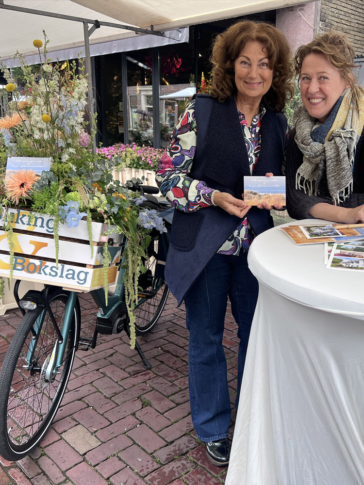 Hoe maak je een moeilijk onderwerp op een luchtige manier bespreekbaar? De dames van Brokking & Bokslag denken overduidelijk in oplossingen, niet in problemen. Daar hadden we al een duidelijke match met elkaar. Met een mooi vormgegeven pakket van kaarten, wensenboekjes, pennen en zelfs een fietskratje met bloemen in de huisstijlkleuren stond Brokking & Bokslag op de Heemsteedse lentefair. Het was een groot succes!